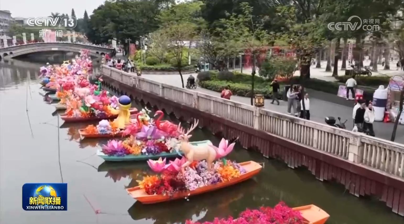 在廣東佛山南海里水鎮(zhèn),嶺南新春水上花市開啟。龍舟花舫、七彩花艇滿載著鮮花,穿梭在河道之上。今年的水上花市還打造近30組水陸花燈,讓人們沉浸式體驗嶺南水鄉(xiāng)的年味。
