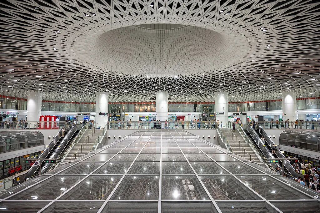 其中,崗廈北地鐵站(深圳之眼)憑借極具未來感的巨型穹頂天窗,成為熱門打卡點。在這里,可尋找影片中的同款機位,定格科幻感與現(xiàn)代美學(xué)交融的瞬間。