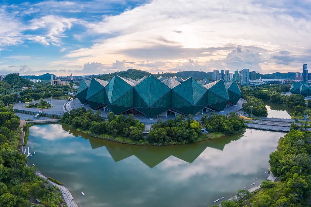 作為深圳文體地標(biāo)——深圳大運中心體育館極具現(xiàn)代建筑美學(xué),成為電影“城市森林”畫面的重要底色。這座以“水晶石”為造型的建筑,線條流暢、質(zhì)感硬核。