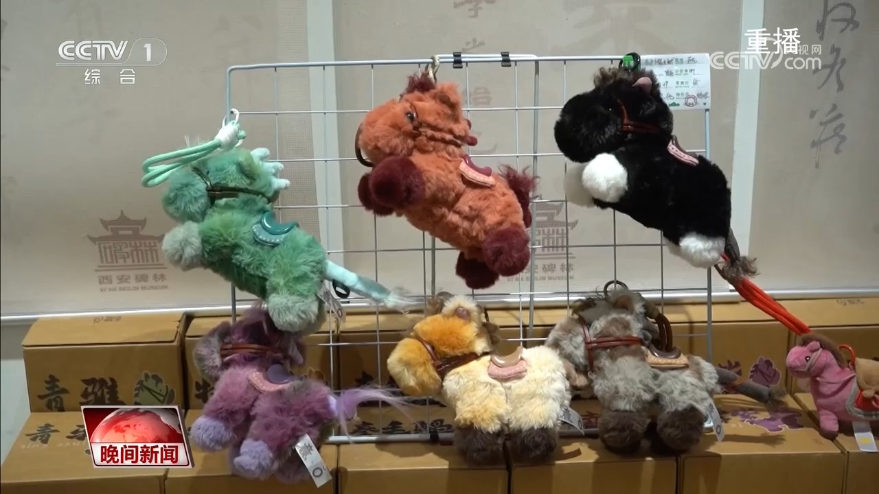 在西安碑林博物館,以唐代“昭陵六駿”石刻為原型的毛絨玩具集歷史文化和現(xiàn)代設(shè)計于一體,線下門店經(jīng)常賣斷貨。