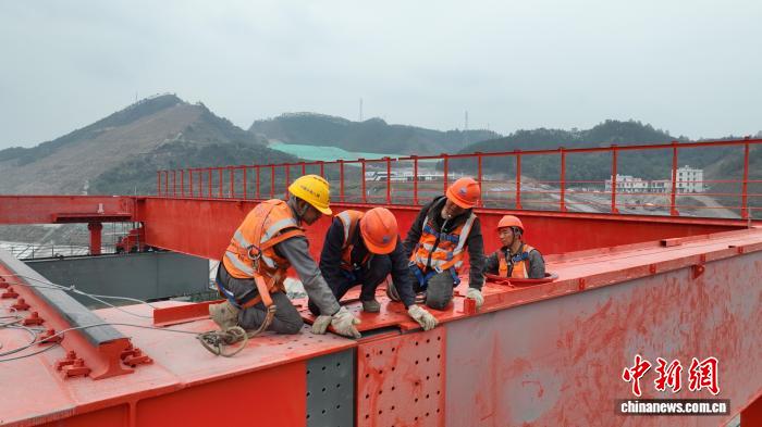 圖為工人們進(jìn)行平陸運(yùn)河金屬結(jié)構(gòu)安裝作業(yè)。平陸運(yùn)河集團(tuán)供圖