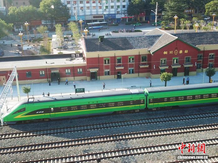 圖為綠巨人動(dòng)車組駛進(jìn)銅川東站。(資料圖)趙宏亮 攝