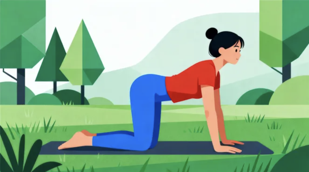 1.懶貓弓背:跪姿,雙手雙膝撐地,手腕對齊肩膀,膝蓋對齊,保持背部平直;吸氣,抬頭塌腰,腹部下沉、臀部上翹,感受肩背腰部拉伸;呼氣,低頭拱背,下巴盡量靠近鎖骨,感受背部肌肉收縮,重復(fù)5-8次。