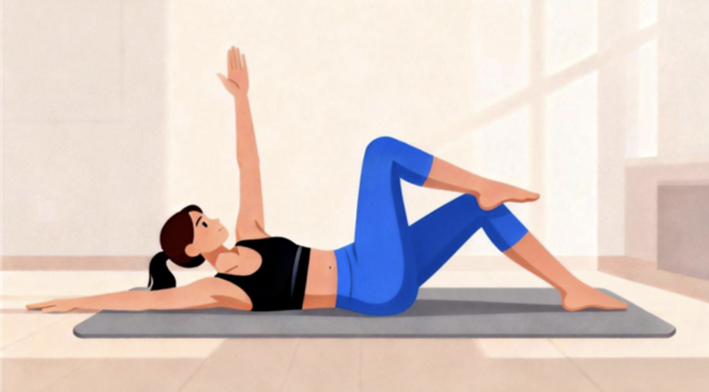 2.側(cè)向伸展:站立位,雙腳與肩同寬,雙手交叉舉過頭頂;向左側(cè)緩慢彎腰,直到右側(cè)腰部有拉伸感(不要扭轉(zhuǎn)身體),保持15-20秒,回到中立位后換側(cè)重復(fù),每側(cè)2-3組。