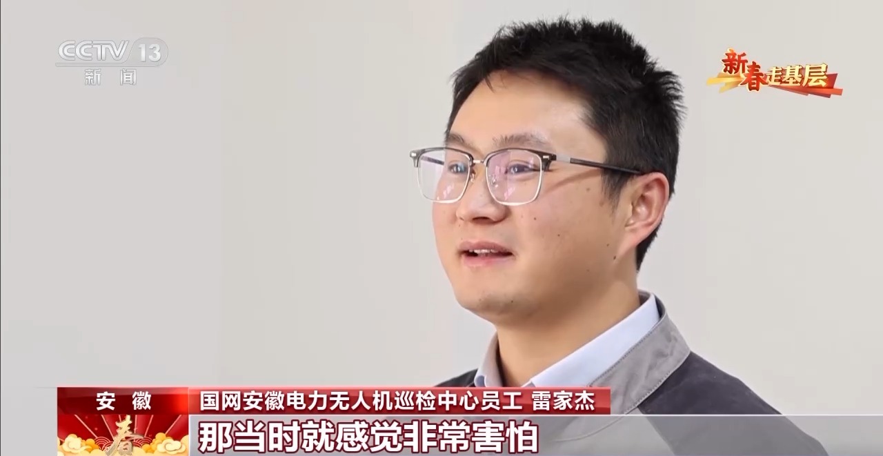 國(guó)網(wǎng)安徽電力無(wú)人機(jī)巡檢中心員工 雷家杰:第一次飛,就把無(wú)人機(jī)搞壞了。一架好幾萬(wàn),頂我一年的工資,當(dāng)時(shí)就感覺(jué)非常害怕?,F(xiàn)場(chǎng)不敢飛了,一看飛機(jī)離塔那么近,我手抖,后來(lái)腿都抖。