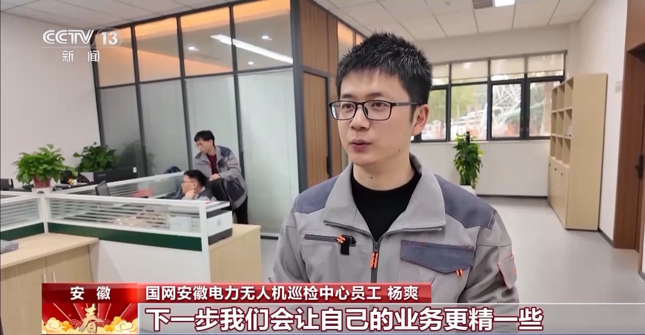 國(guó)網(wǎng)安徽電力無(wú)人機(jī)巡檢中心員工 楊爽:下一步我們會(huì)讓自己的業(yè)務(wù)更精一些。技術(shù)發(fā)展這么快,我們得跟緊時(shí)代的步伐。