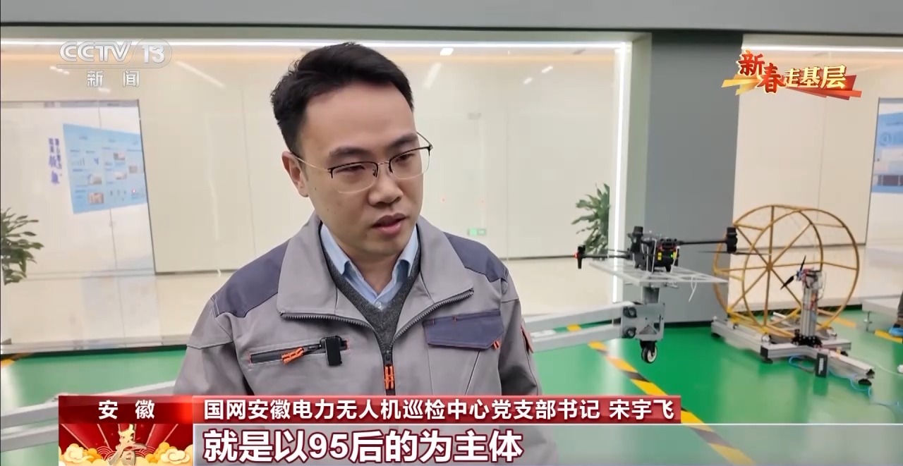 國(guó)網(wǎng)安徽電力無(wú)人機(jī)巡檢中心黨支部書(shū)記 宋宇飛:我們這個(gè)團(tuán)隊(duì)就是以95后的為主體,占比應(yīng)該是在60%。