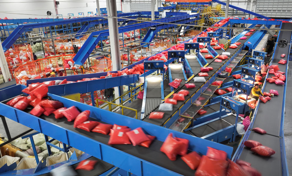 在江蘇南通一家國際物流園分揀中心,工作人員在分揀貨物(2023年12月20日攝,無人機照片)。“十四五”期間,面對地緣政治風險和貿(mào)易壁壘,我國以跨境電商、保稅維修、市場采購等為代表的新業(yè)態(tài)新模式助力各國消費者、生產(chǎn)者“買全球、賣全球”,成為穩(wěn)外貿(mào)的重要引擎。