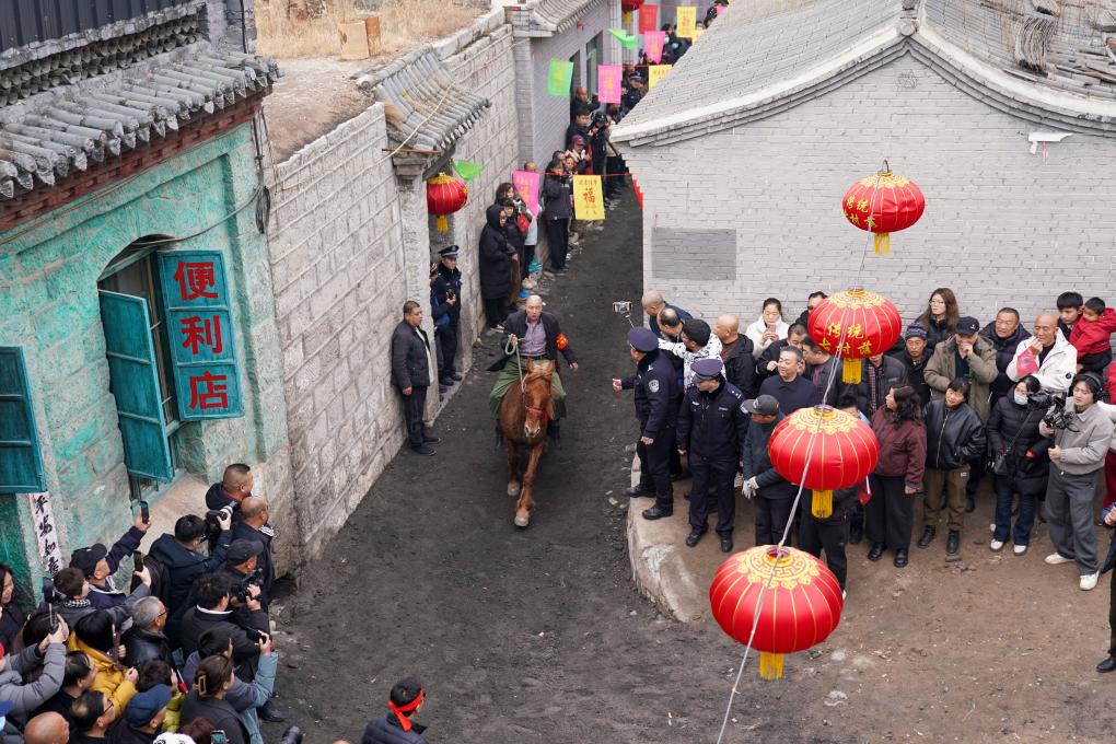 3月4日,農(nóng)歷正月十六,這個(gè)距離娘子關(guān)僅6公里的小山村,迎來了一年中最熱鬧的時(shí)刻,村中那條長(zhǎng)約400米、寬不足4米的青石古巷上,里三層外三層擠滿了人。沿路民房的臺(tái)階上、門檻上,甚至屋頂上,都早已站上了不請(qǐng)自來的看客,主人家卻也毫不在意:“今天這個(gè)大日子,大家一起熱鬧熱鬧!”