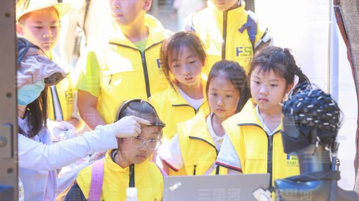 資料圖:小學(xué)生們?cè)隗w驗(yàn)意念康復(fù)腦機(jī)接口系統(tǒng)。中新社記者 賈天勇 攝