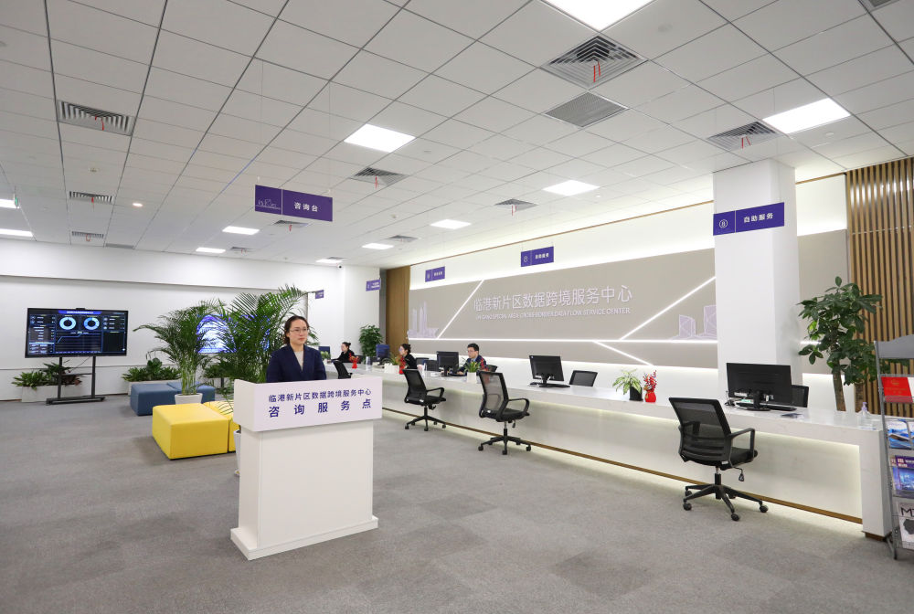 中國(上海)自由貿(mào)易試驗區(qū)臨港新片區(qū)數(shù)據(jù)跨境服務(wù)中心內(nèi)景。該中心4月7日啟用運(yùn)營,致力于為數(shù)據(jù)處理者提供全方位、全流程數(shù)據(jù)跨境服務(wù),包括材料受理、業(yè)務(wù)咨詢等,在臨港新片區(qū)打造數(shù)據(jù)跨境流動的綠色通道(2024年4月9日攝)。