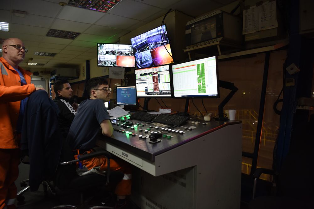 技術(shù)人員在斯梅戴雷沃鋼廠控制室里監(jiān)控生產(chǎn)過程。