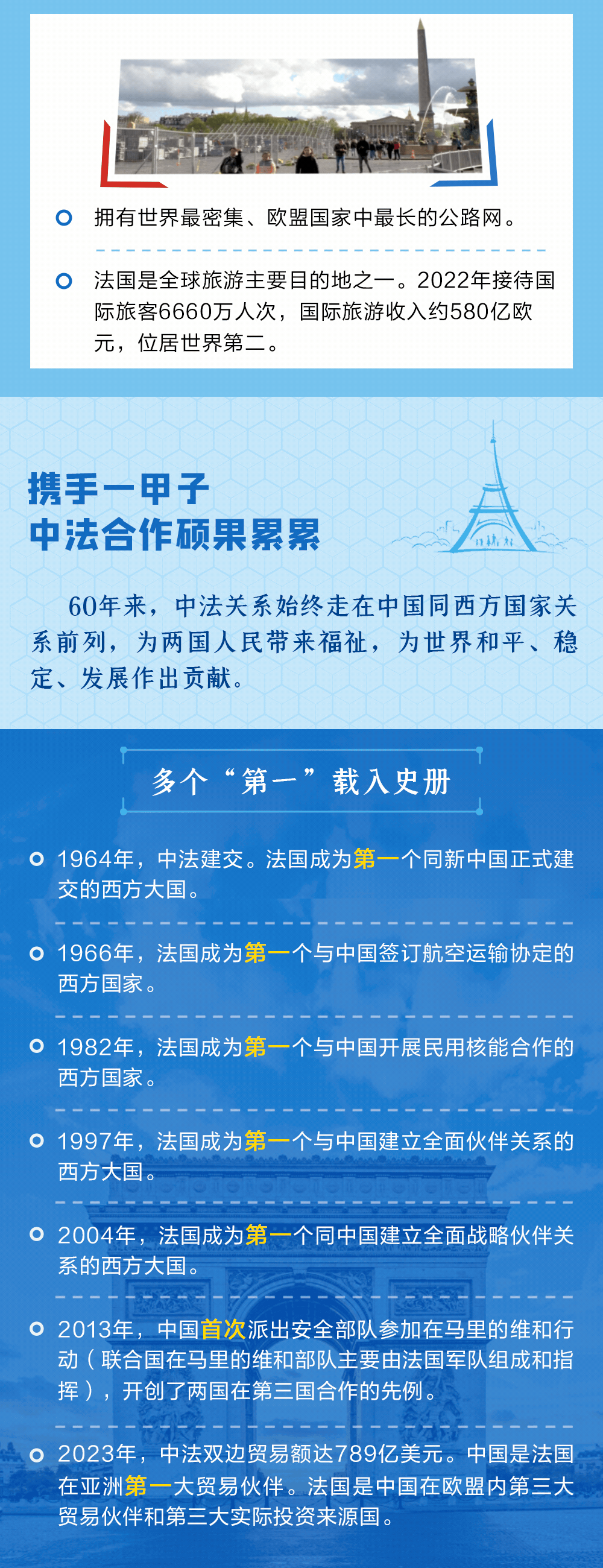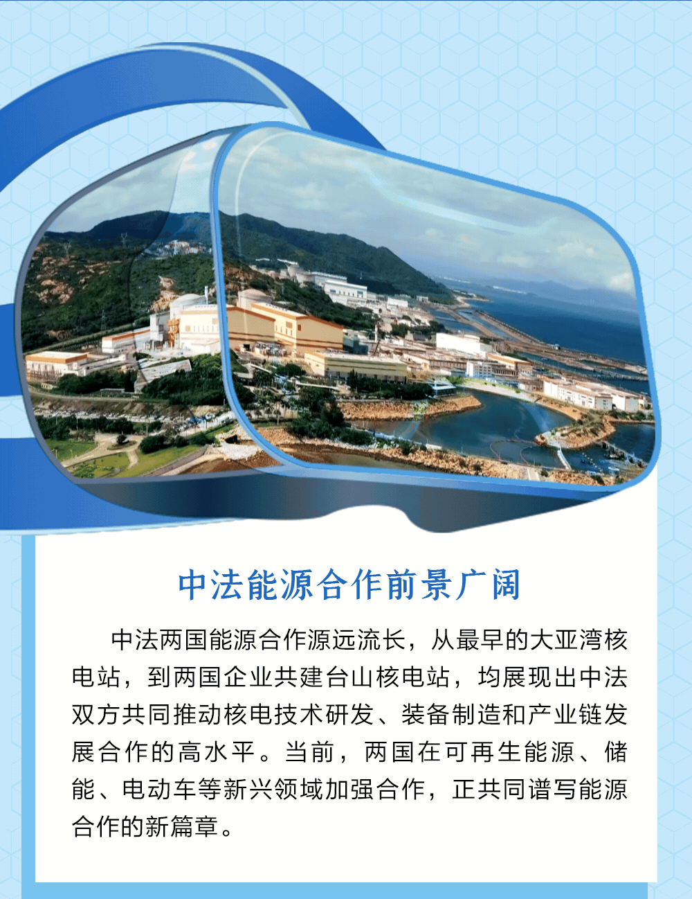 “法國是第一個同新中國正式建交的西方大國,也是最早同中國建立戰(zhàn)略伙伴關系和開展戰(zhàn)略對話、最早同中國開展民用核能合作的國家?!绷暯街飨瘡娬{,中法是特殊的朋友,共贏的伙伴。