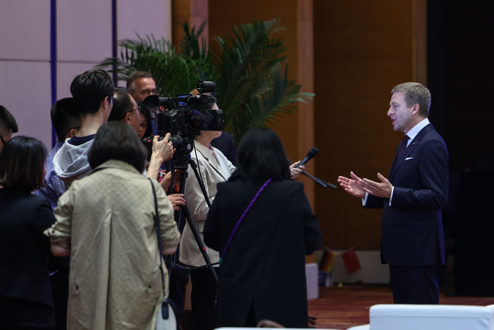 2024年4月26日,遼寧省沈陽(yáng)市與寶馬集團(tuán)深化戰(zhàn)略合作簽約儀式在沈陽(yáng)舉行,這是寶馬集團(tuán)董事長(zhǎng)齊普策接受采訪?! ⌒氯A社記者 潘昱龍 攝