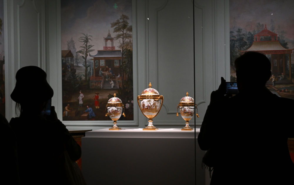 2024年4月1日,觀眾在北京故宮參觀“紫禁城與凡爾賽宮——17、18世紀(jì)的中法交往”展覽?! ⌒氯A社記者 金良快 攝