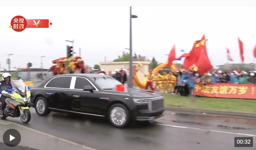當(dāng)?shù)貢r(shí)間5月5日下午,國家主席習(xí)近平乘專機(jī)抵達(dá)巴黎。從機(jī)場(chǎng)前往下榻酒店途中,包括華人華僑和中國留學(xué)生代表在內(nèi)的歡迎人群揮舞著中法兩國國旗,敲鑼打鼓,舞龍舞獅,熱烈歡迎習(xí)近平主席到訪。