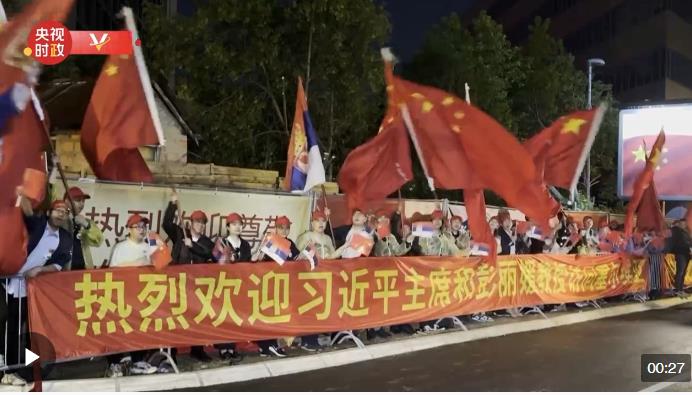 當?shù)貢r間5月7日晚,國家主席習(xí)近平乘專機抵達貝爾格萊德。在機場前往下榻酒店途中,人們揮舞中塞兩國國旗,熱烈歡迎習(xí)近平主席到訪。