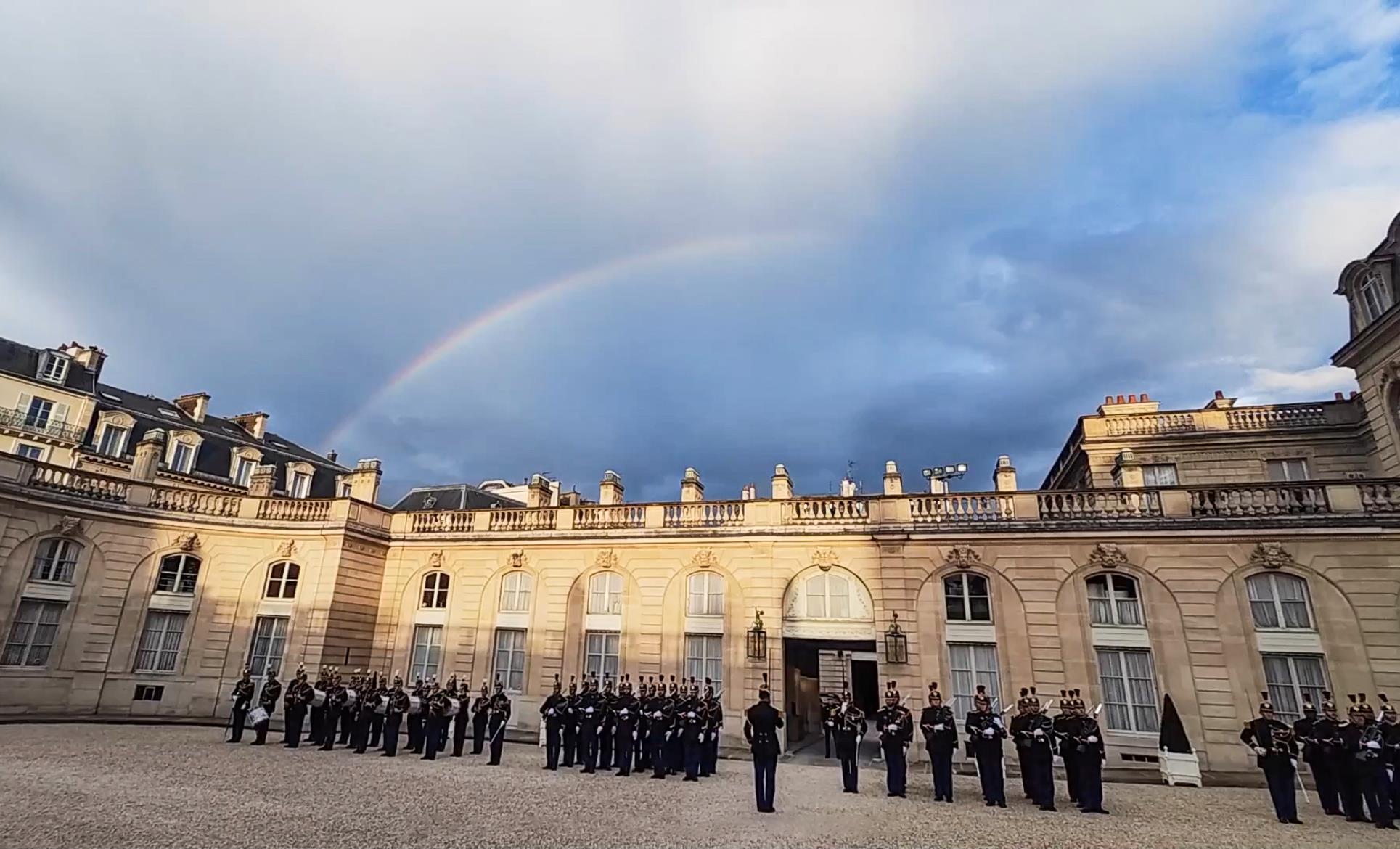 當(dāng)?shù)貢r(shí)間5月6日晚,習(xí)近平主席在巴黎出席馬克龍總統(tǒng)舉行的盛大歡迎宴會(huì)。宴會(huì)前,愛麗舍宮上空出現(xiàn)彩虹。彩虹連接著東西方。塞納河畔,正寫下中法兩國(guó)“雙向奔赴”的新故事。