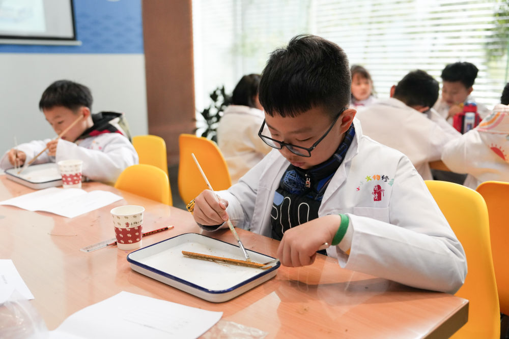 2024年3月16日,孩子們在長沙簡牘博物館參與社會(huì)教育活動(dòng)“探秘簡牘的清洗與保護(hù)”。湖南是簡牘出土大省,長沙簡牘博物館推出了系列展陳、社會(huì)教育活動(dòng)等,讓觀眾能走近這跨越千年的“百科全書”。