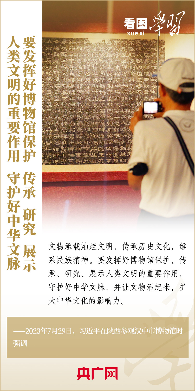 “一座博物館就是一所大學?!薄安┪镳^很重要,我從小就愛看博物館,小時候北京的博物館我差不多都看過了”“博物館建設要更完善、更成體系,同時發(fā)揮好博物館的教育功能”……在國內考察中,習近平總書記曾經多次走進當?shù)夭┪镳^,了解館藏文物的收藏、保護、研究情況,對博物館建設和利用作出重要指示。一起來學習!