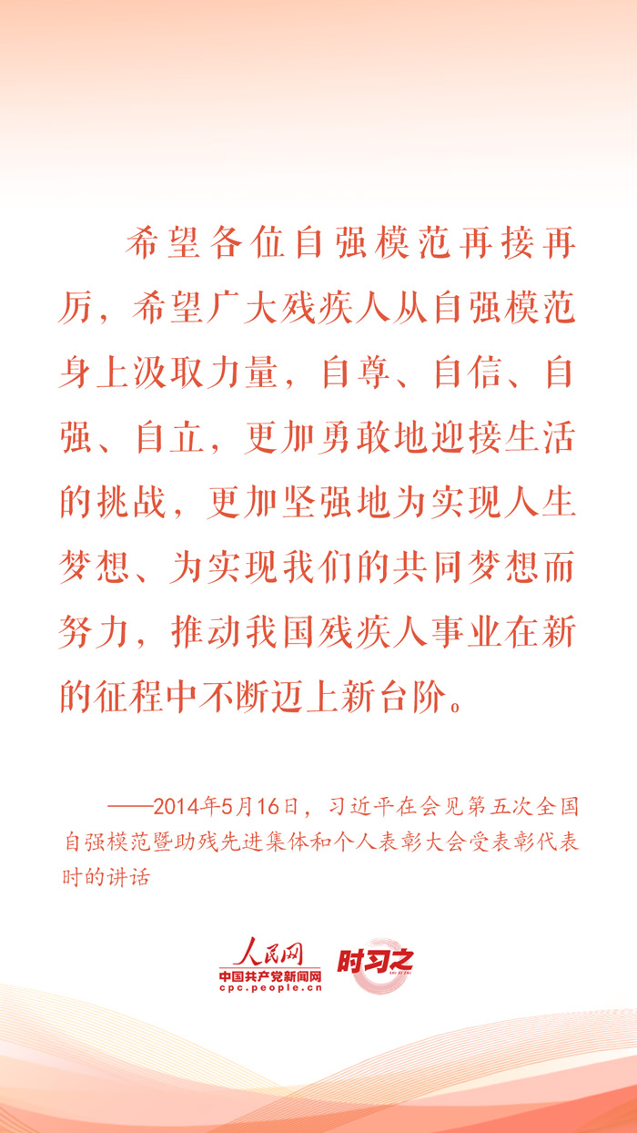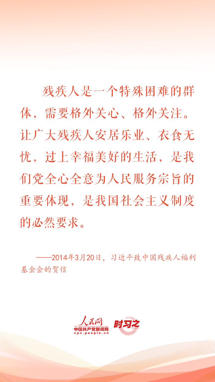 2024年5月19日是第三十四次全國(guó)助殘日。對(duì)于殘疾人這個(gè)特殊群體,習(xí)近平總書記始終格外關(guān)心、格外關(guān)注,在不同場(chǎng)合頻頻為他們加油鼓勁,勉勵(lì)他們活出精彩的人生。