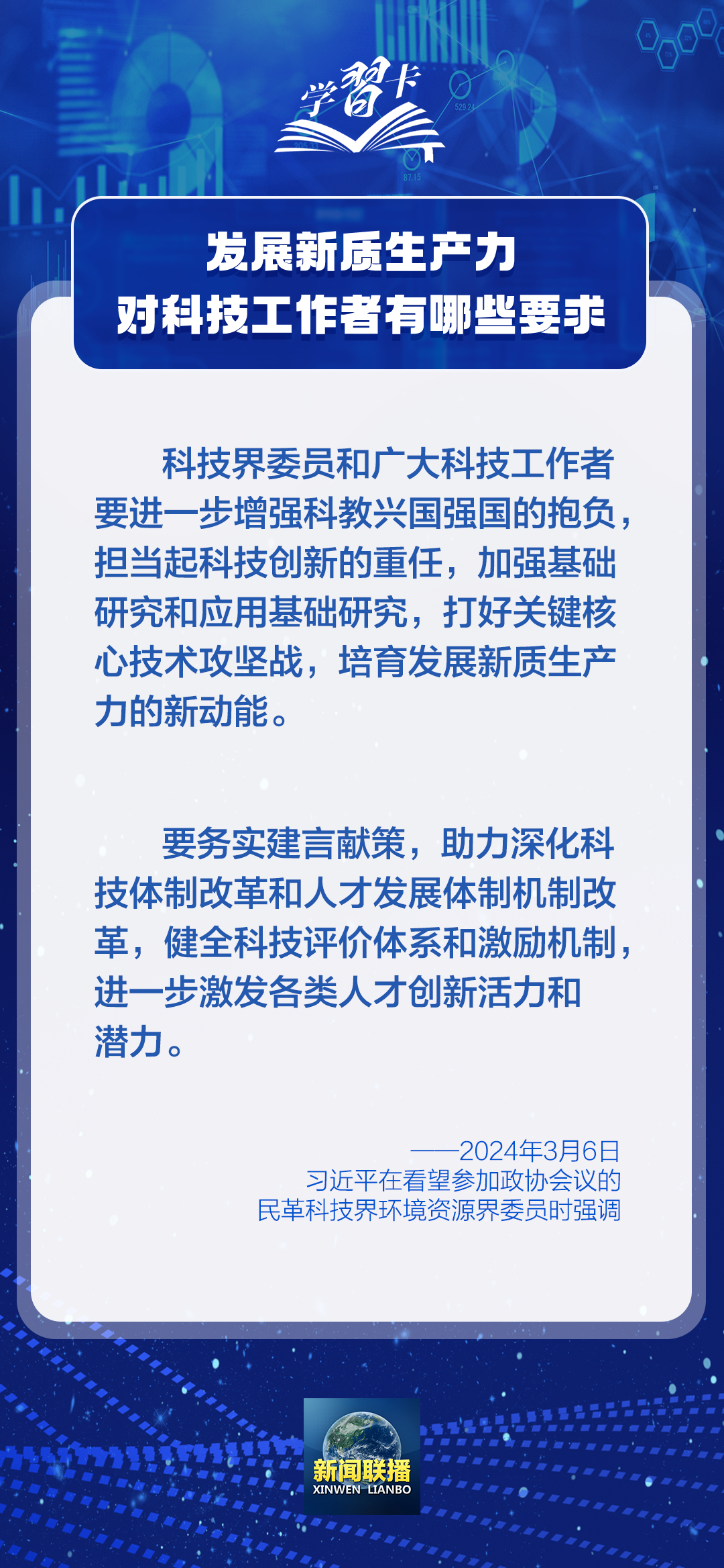 2024年5月30日是第八個“全國科技工作者日”。實(shí)現(xiàn)科技自立自強(qiáng)、建設(shè)世界科技強(qiáng)國,廣大科技工作者責(zé)任重大、使命光榮。培育發(fā)展新質(zhì)生產(chǎn)力的新動能,廣大科技工作者可以怎么做?習(xí)近平總書記的一系列論述指明了方向。一起學(xué)習(xí)↓↓↓