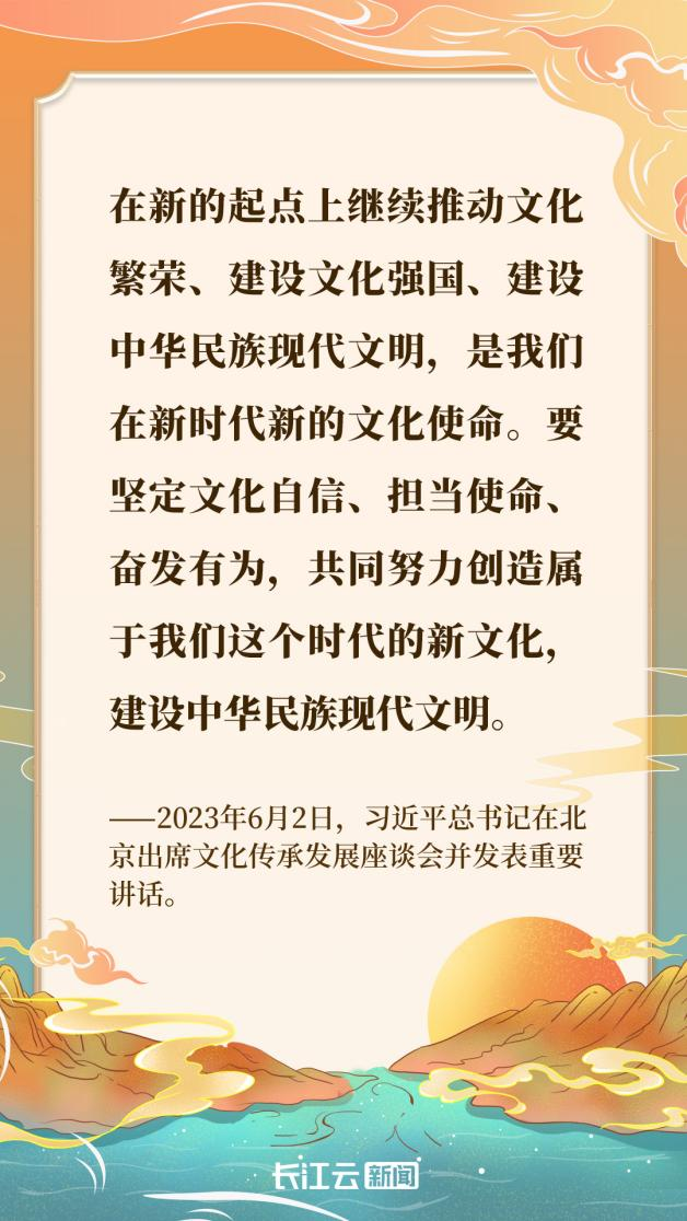 2023年6月2日,文化傳承發(fā)展座談會(huì)在北京召開,習(xí)近平總書記發(fā)表重要講話,從黨和國(guó)家事業(yè)發(fā)展全局戰(zhàn)略高度,對(duì)中華文化傳承發(fā)展的一系列重大理論和現(xiàn)實(shí)問題作了全面系統(tǒng)深入闡述,為在全面建設(shè)社會(huì)主義現(xiàn)代化國(guó)家新征程上推進(jìn)文化傳承發(fā)展事業(yè)指明了前進(jìn)方向、提供了根本遵循。