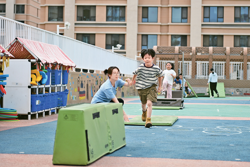 近年來,河北雄安新區(qū)通過創(chuàng)新教育發(fā)展體制機制、高標準配建教育設施、引入專業(yè)教師隊伍、引進優(yōu)質教育資源等方式,不斷推動教育高質量發(fā)展。圖為2024年5月23日,當地幼兒園的孩子們在室外活動。 新華社記者 牟宇/攝