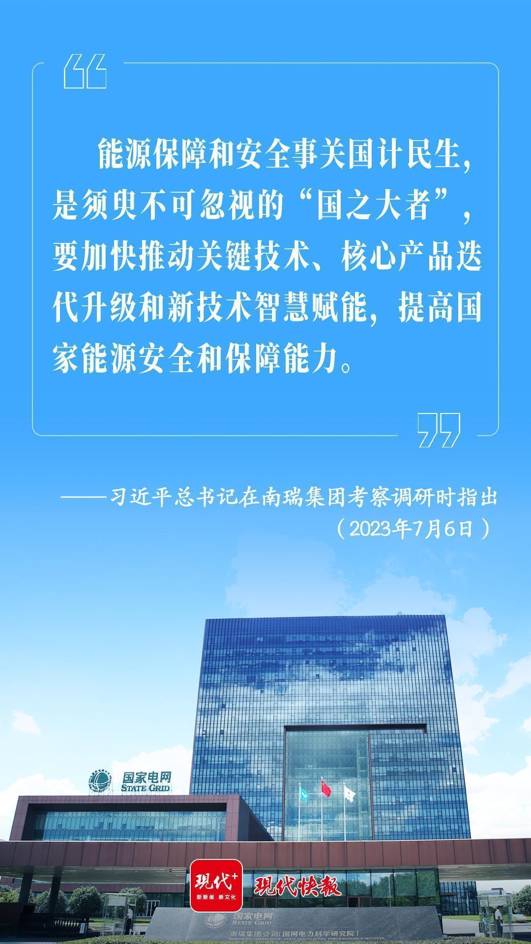 2023年7月6日,習(xí)近平總書記在江蘇南京考察南瑞集團(tuán)時指出,能源保障和安全事關(guān)國計民生,是須臾不可忽視的“國之大者”。要加快推動關(guān)鍵技術(shù)、核心產(chǎn)品迭代升級和新技術(shù)智慧賦能,提高國家能源安全和保障能力。