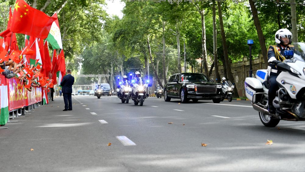 赴機(jī)場(chǎng)途中,當(dāng)?shù)厝A僑華人和中資機(jī)構(gòu)代表在道路兩旁揮舞中塔兩國(guó)國(guó)旗,祝賀習(xí)近平主席對(duì)塔吉克斯坦國(guó)事訪問(wèn)取得圓滿成功。