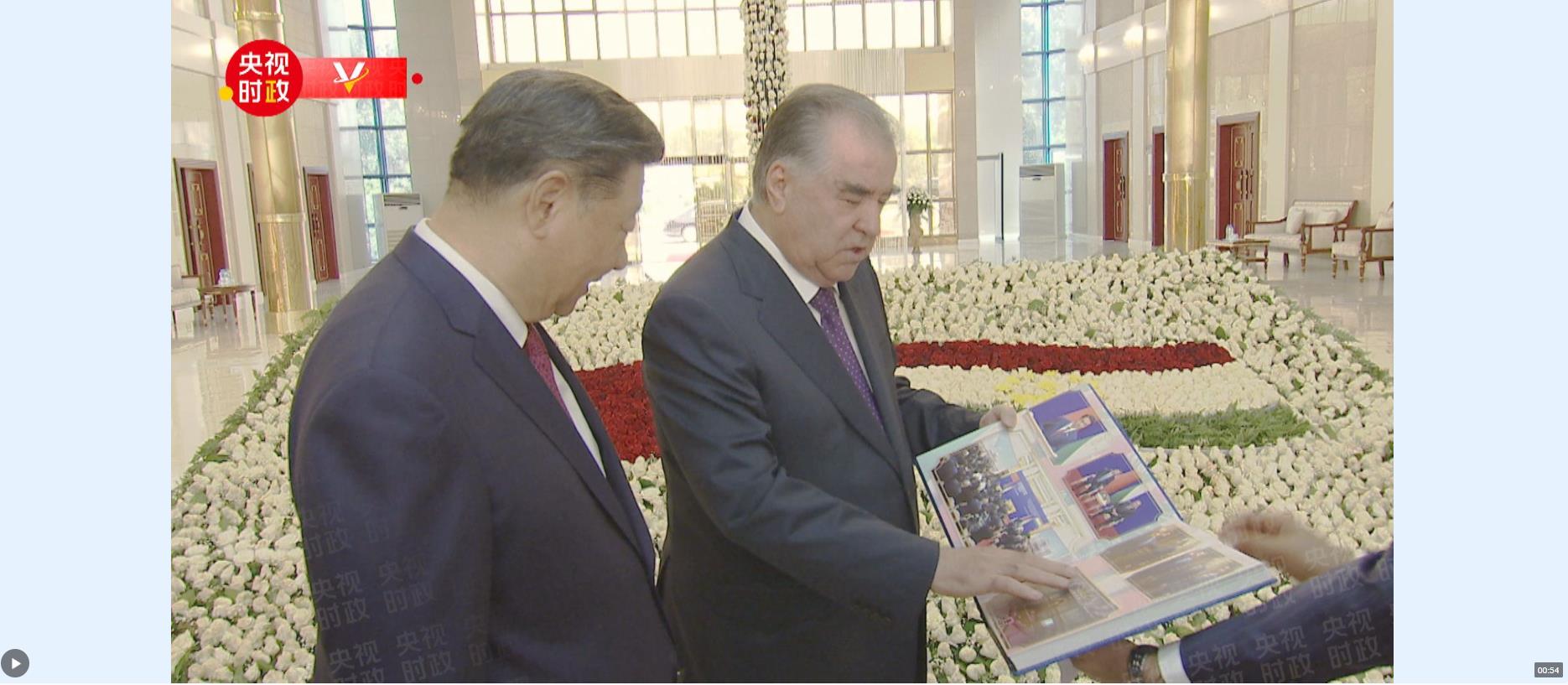 在機場,拉赫蒙向習近平贈送2014年以來三次訪塔的珍貴相冊,再次熱烈祝賀習近平主席對塔吉克斯坦成功進行歷史性國事訪問。