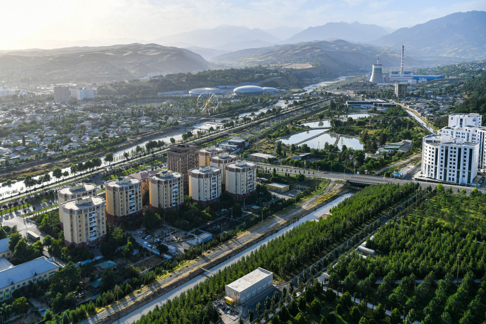 6月26日,從獨(dú)立與自由塔上眺望,奔騰的瓦爾佐布河穿城而過,杜尚別城市風(fēng)光盡入眼簾。
