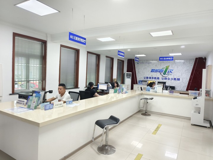 “您好,請(qǐng)問有什么可以幫您?”面對(duì)前來辦事的群眾,工作人員微笑著詢問,沒有像銀行柜臺(tái)一樣的玻璃阻隔,大家面對(duì)面交流,格外順暢。