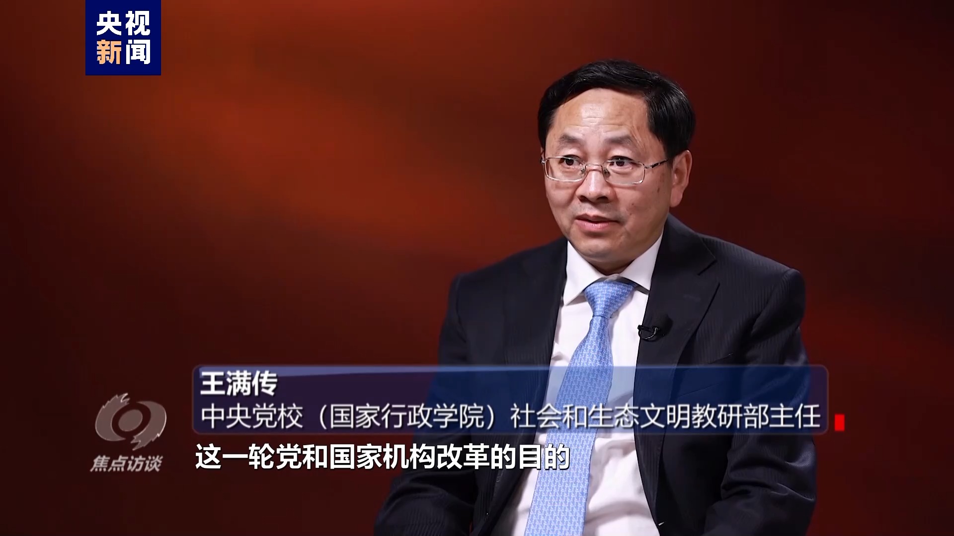 中央黨校(國(guó)家行政學(xué)院)社會(huì)和生態(tài)文明教研部主任 王滿傳:通過(guò)這一系列重要的舉措,達(dá)到了習(xí)近平總書(shū)記提出的這一輪黨和國(guó)家機(jī)構(gòu)改革的目的。就是推動(dòng)黨對(duì)社會(huì)主義現(xiàn)代化建設(shè)的領(lǐng)導(dǎo),在機(jī)構(gòu)設(shè)置上更加科學(xué)、在職能配置上更加優(yōu)化、在管理運(yùn)行上更加高效。