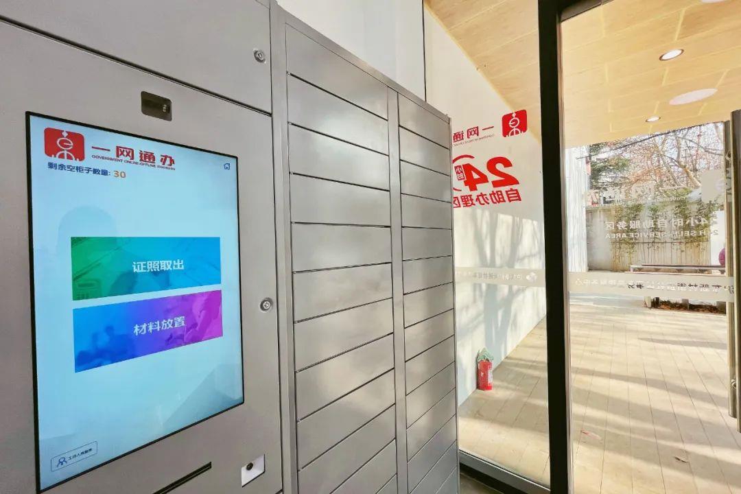 此外,一旁的“智能文件柜”實(shí)現(xiàn)了居民和社區(qū)事務(wù)受理中心24小時(shí)的材料交接——比如像需要提交預(yù)審材料的事項(xiàng),居民可以利用“智能文件柜”進(jìn)行存件,事項(xiàng)辦結(jié)后,憑短信通知前來領(lǐng)取相關(guān)材料,真正實(shí)現(xiàn)了“不見面辦理”,也方便居民在任意時(shí)間存取文件。