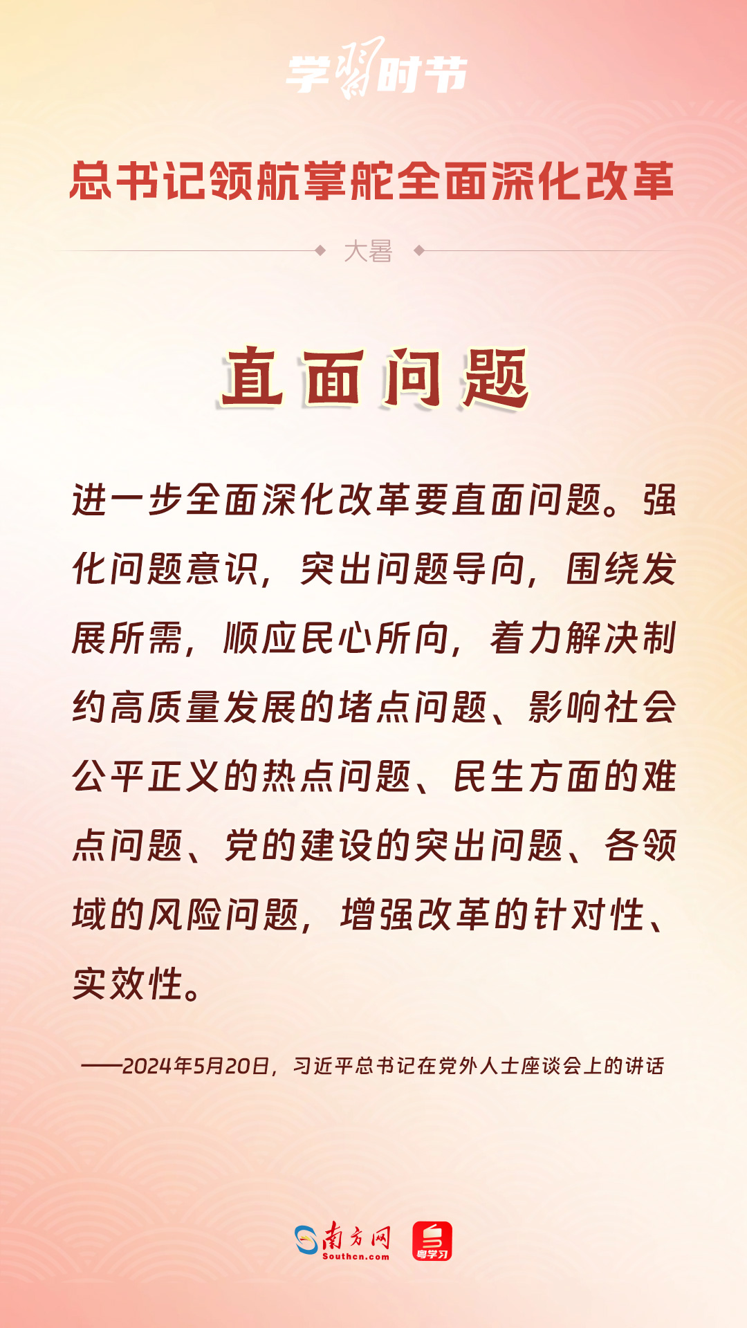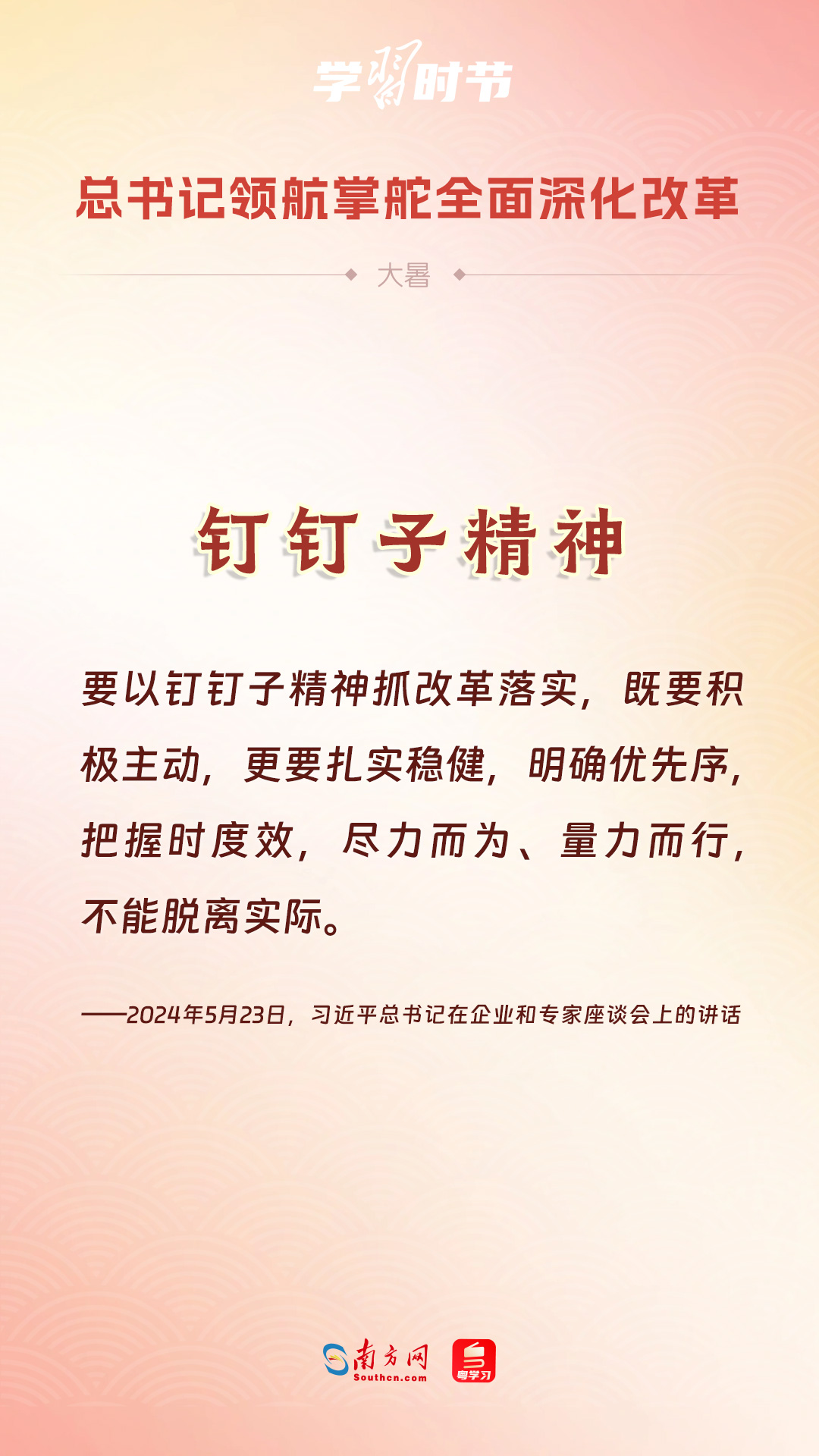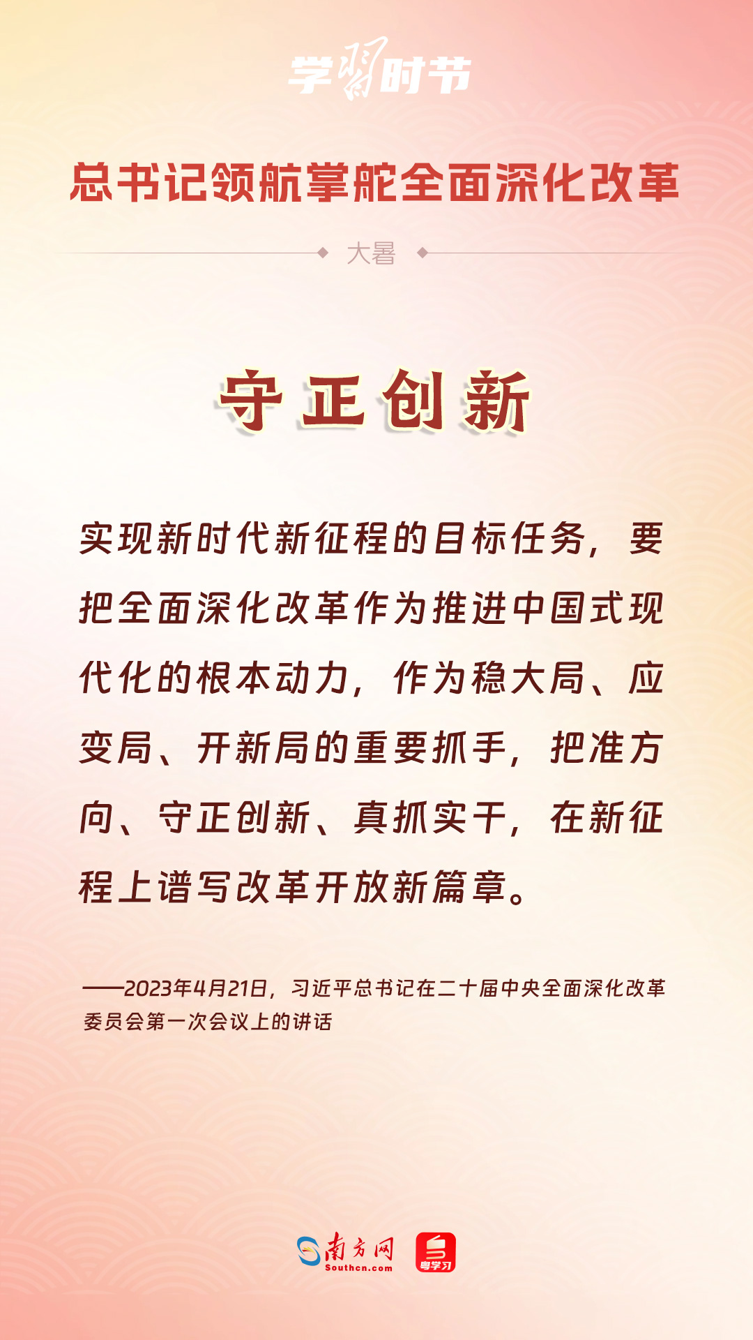 黨的十八大以來(lái),習(xí)近平總書記親自領(lǐng)導(dǎo)、親自部署、親自推動(dòng)全面深化改革工作,推動(dòng)全面深化改革事業(yè)在攻堅(jiān)克難中不斷邁上新臺(tái)階、取得新勝利。在驕陽(yáng)似火的大暑時(shí)節(jié),通過(guò)一組海報(bào),讓我們共同學(xué)習(xí)習(xí)近平總書記關(guān)于“全面深化改革”的重要論述。