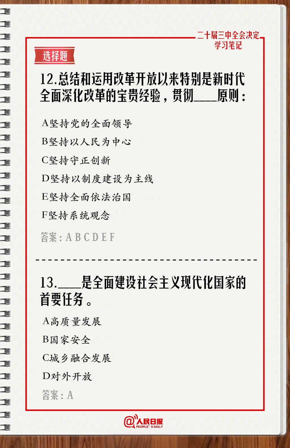 快來(lái)測(cè)一測(cè)!學(xué)習(xí)二十屆三中全會(huì)《決定》,一起答題