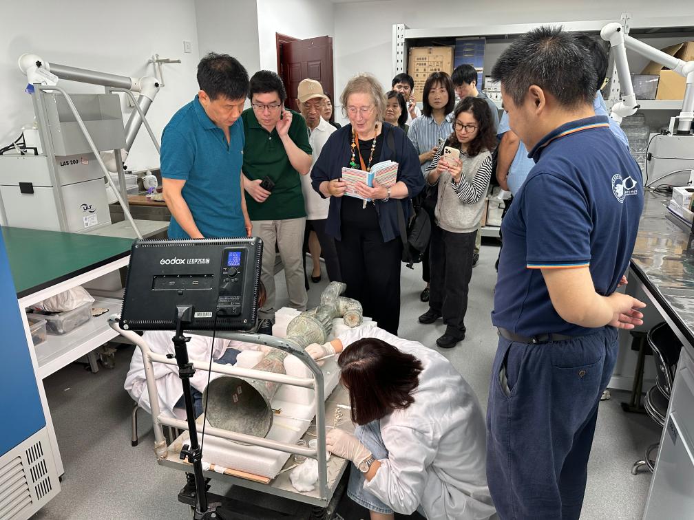 2024年5月28日,英國(guó)考古學(xué)家、牛津大學(xué)教授杰西卡·羅森在文物保護(hù)修復(fù)實(shí)驗(yàn)室觀摩文物。新華社發(fā)(四川省文物考古研究院供圖)