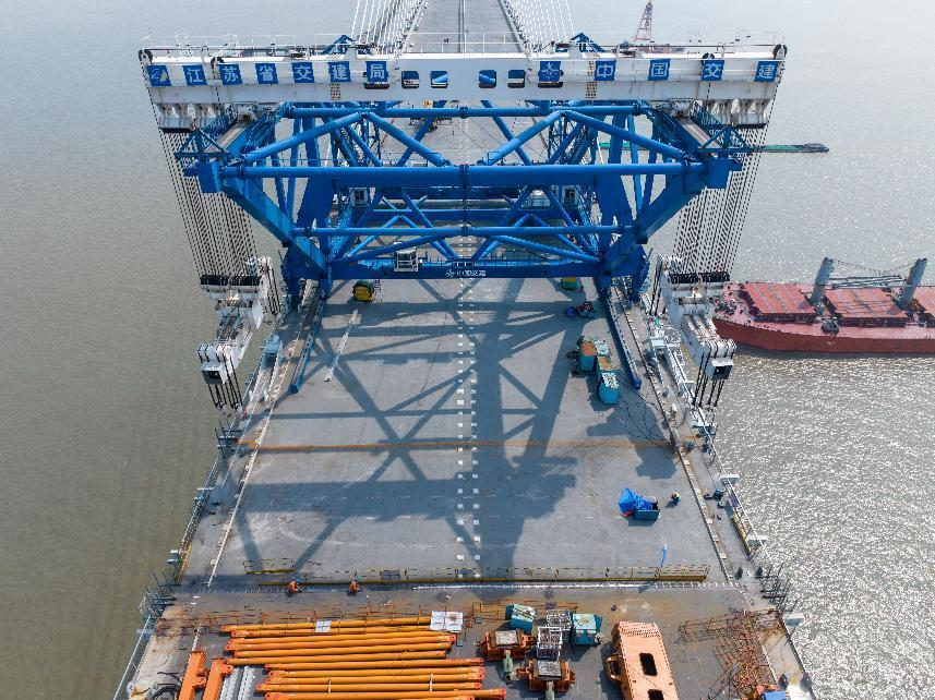在江蘇,長達1208米的世界最大跨度斜拉橋——常泰長江大橋全橋貫通。建設單位在大橋建設過程中投用了QMD-2000型全球最大噸位橋面吊機,研發(fā)了抗拉強度高達2100兆帕的斜拉索,打造出國內(nèi)首條鋼桁梁全過程智能生產(chǎn)線……依托5G、大數(shù)據(jù)、物聯(lián)網(wǎng)等信息技術(shù),常泰長江大橋建設還實現(xiàn)了對施工全過程的“可知、可測、可控”。