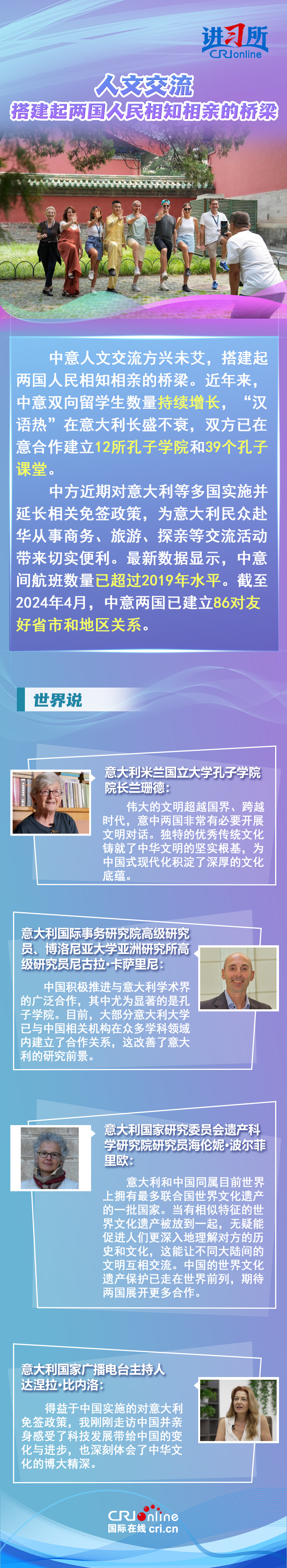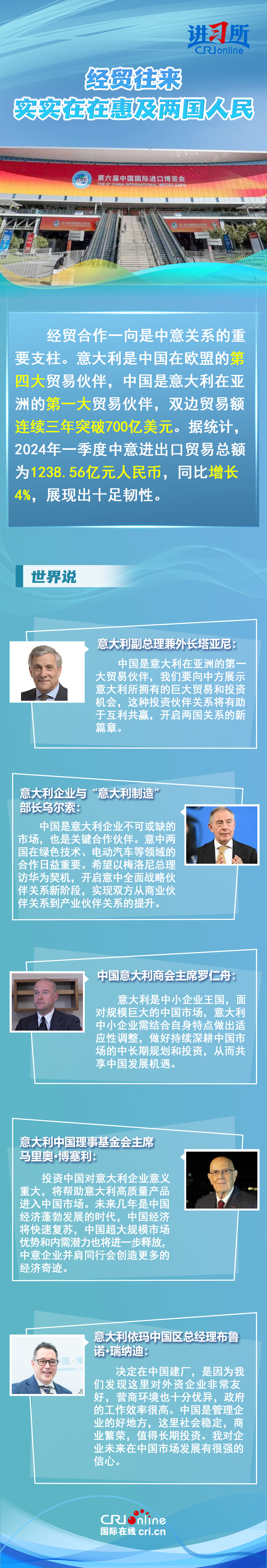 梅洛尼表示,中國對(duì)意大利而言是一個(gè)極為重要的經(jīng)貿(mào)和文化合作伙伴。意大利各界人士認(rèn)為,中意并肩同行會(huì)創(chuàng)造更多的經(jīng)濟(jì)奇跡,同時(shí)兩國非常有必要開展文明對(duì)話,期待未來兩國展開更多領(lǐng)域合作,開啟全面戰(zhàn)略伙伴關(guān)系新階段。