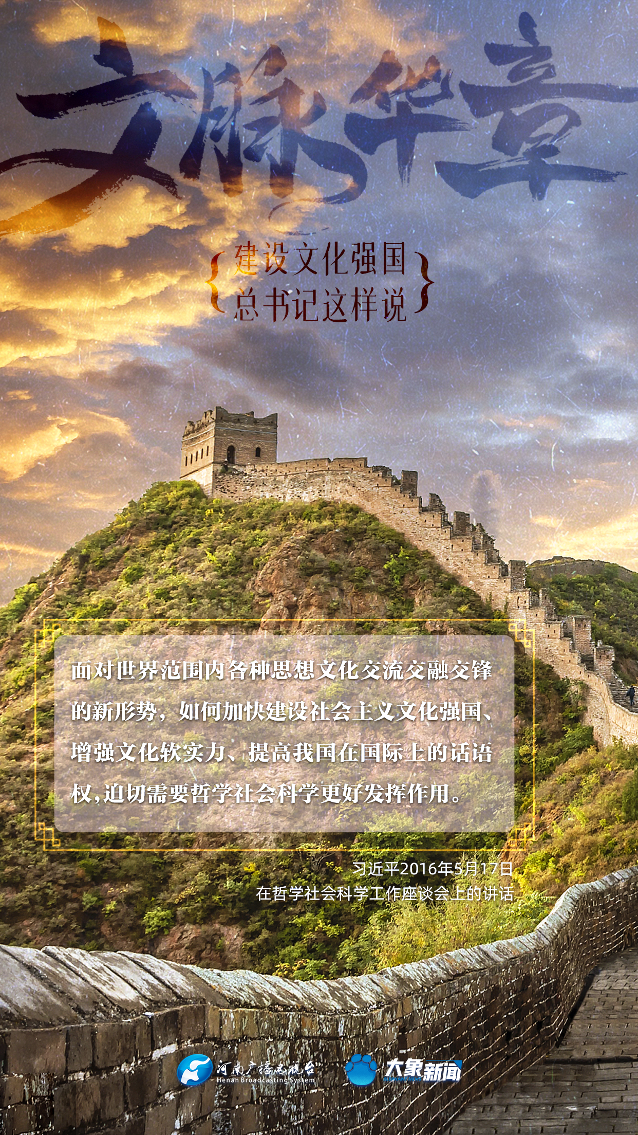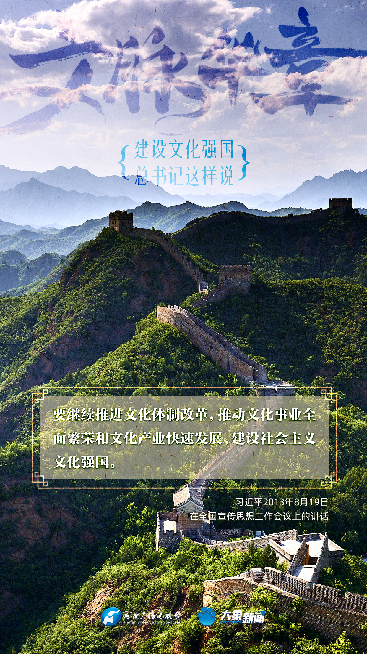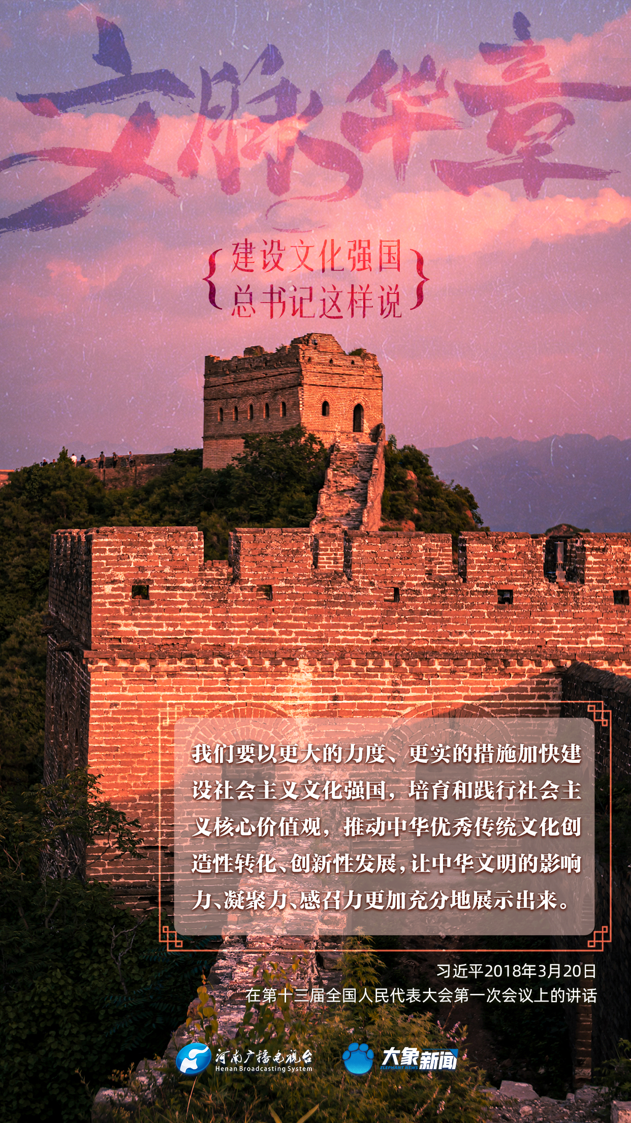 黨的十八大以來,習(xí)近平總書記站在全局和戰(zhàn)略高度,就建設(shè)社會主義文化強國提出一系列新思想新觀點新論斷,為我們堅定文化自信,堅持中國特色社會主義文化發(fā)展道路,提供了指引。大象新聞與您一起學(xué)習(xí)、領(lǐng)悟。