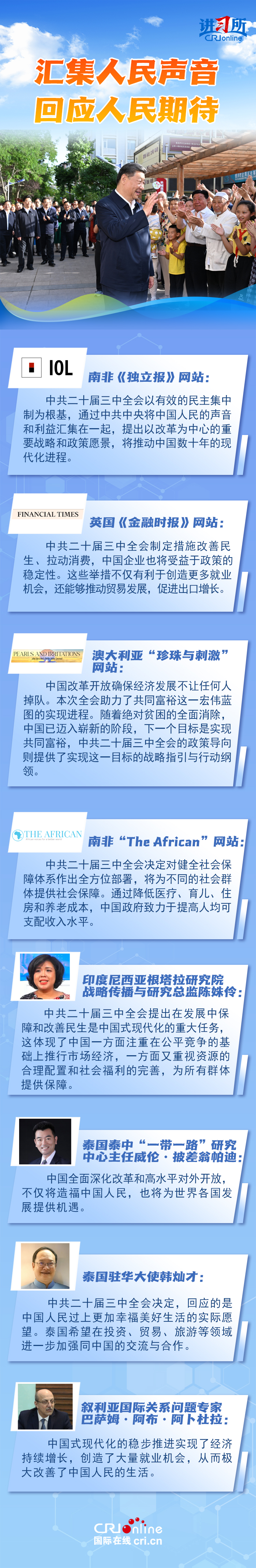 人民立場是中國共產(chǎn)黨的根本立場,它向世界展現(xiàn)了中國以人民為中心推進改革的堅定決心和力量。國際社會認為,中國這場全面深化改革,不僅將造福中國人民,也將為世界各國發(fā)展提供機遇。