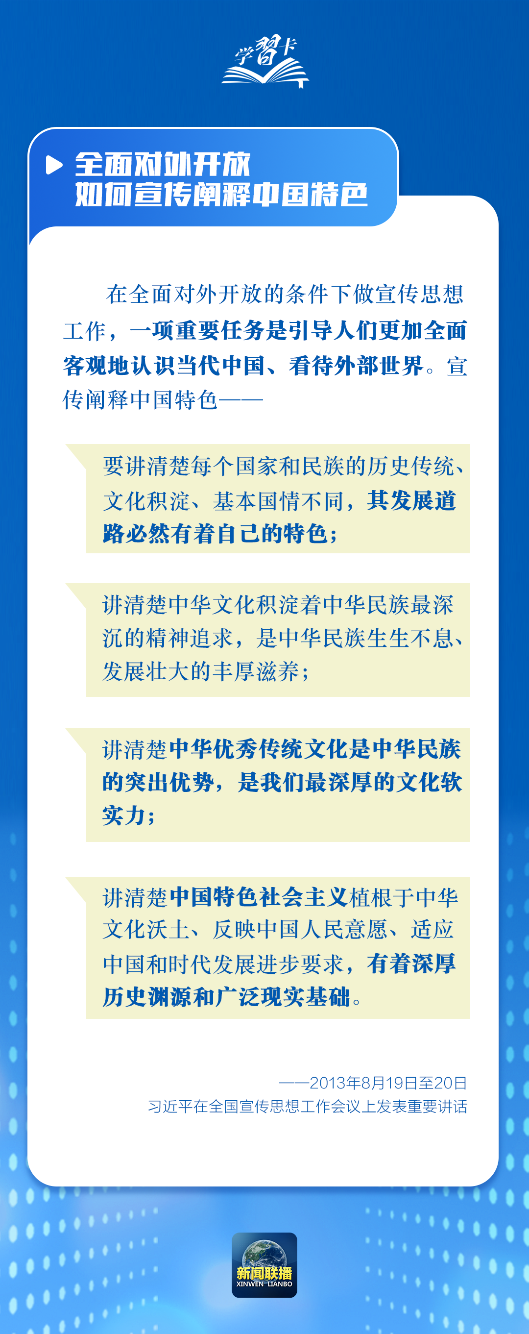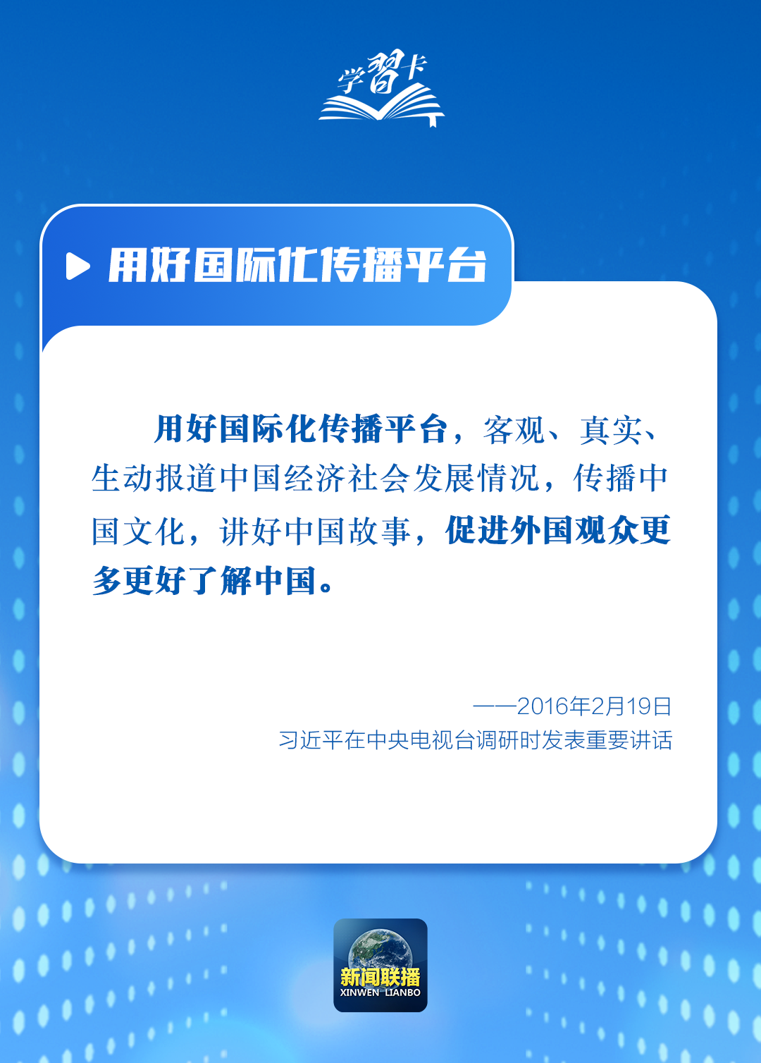 習(xí)近平總書記高度重視國際傳播能力建設(shè),指出當(dāng)前外宣工作處于歷史最好時(shí)期,同時(shí)也面臨最大壓力,強(qiáng)調(diào)要全面加強(qiáng)和改進(jìn)國際傳播工作,深化文明交流互鑒,形成同我國綜合國力和國際地位相匹配的國際話語權(quán),增強(qiáng)中華文明傳播力影響力。一起學(xué)習(xí)↓
