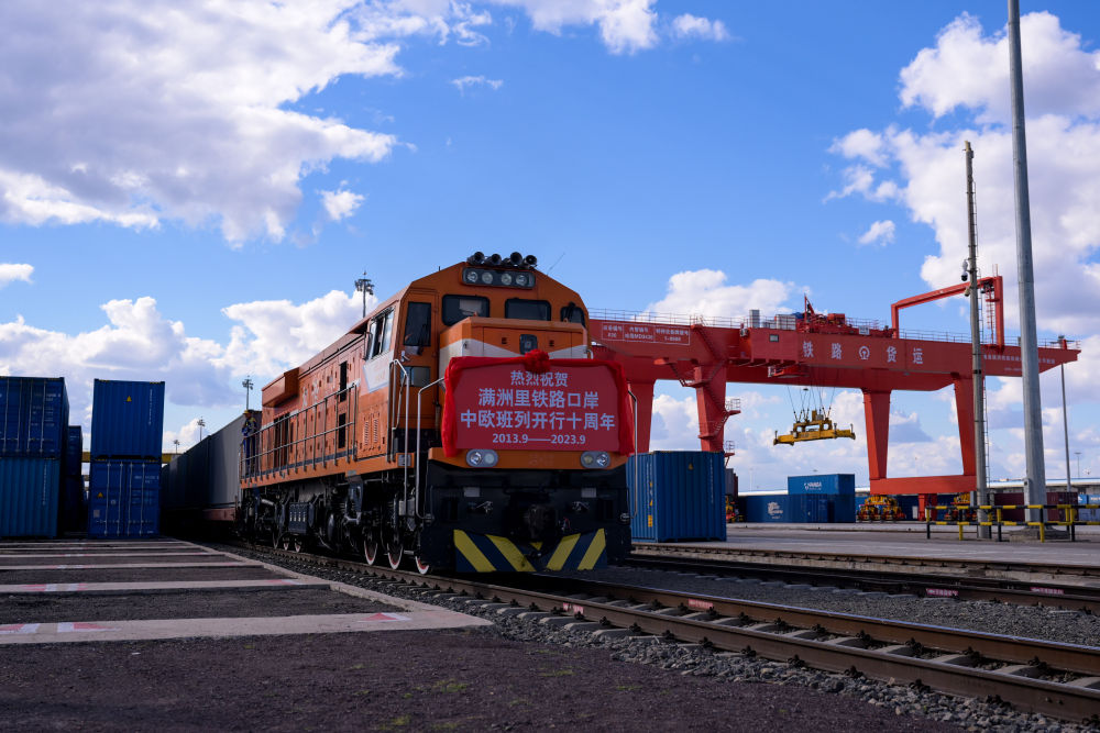 2023年9月20日,一列中歐班列行駛在內(nèi)蒙古滿洲里站貨運車間集裝箱場。作為我國向北開放的“橋頭堡”、中歐班列“東通道”的重要口岸,滿洲里鐵路口岸不斷加大中歐班列通道能力建設(shè),進一步提升運輸效率和品質(zhì)。
