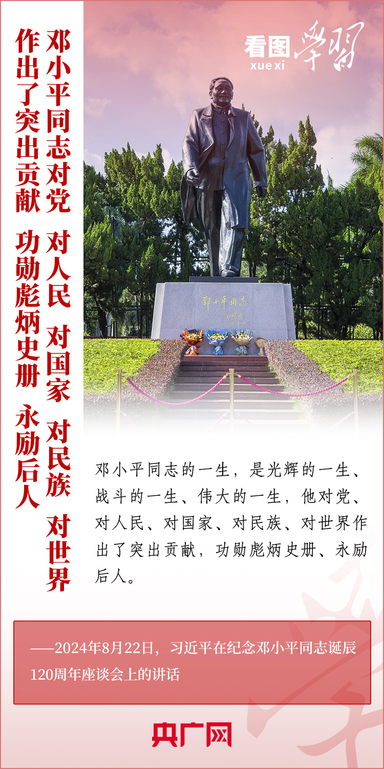 8月22日,習近平總書記在紀念鄧小平同志誕辰120周年座談會上發(fā)表重要講話指出,鄧小平同志的歷史功勛是全方位的、開創(chuàng)性的,對中國和世界的影響是深刻的、長遠的。總書記強調,對鄧小平同志最好的紀念,就是把他開創(chuàng)的中國特色社會主義事業(yè)繼續(xù)推向前進。我們要緊緊圍繞以中國式現代化全面推進強國建設、民族復興偉業(yè)這個中心任務,繼往開來,奮發(fā)進取。一起來學習!