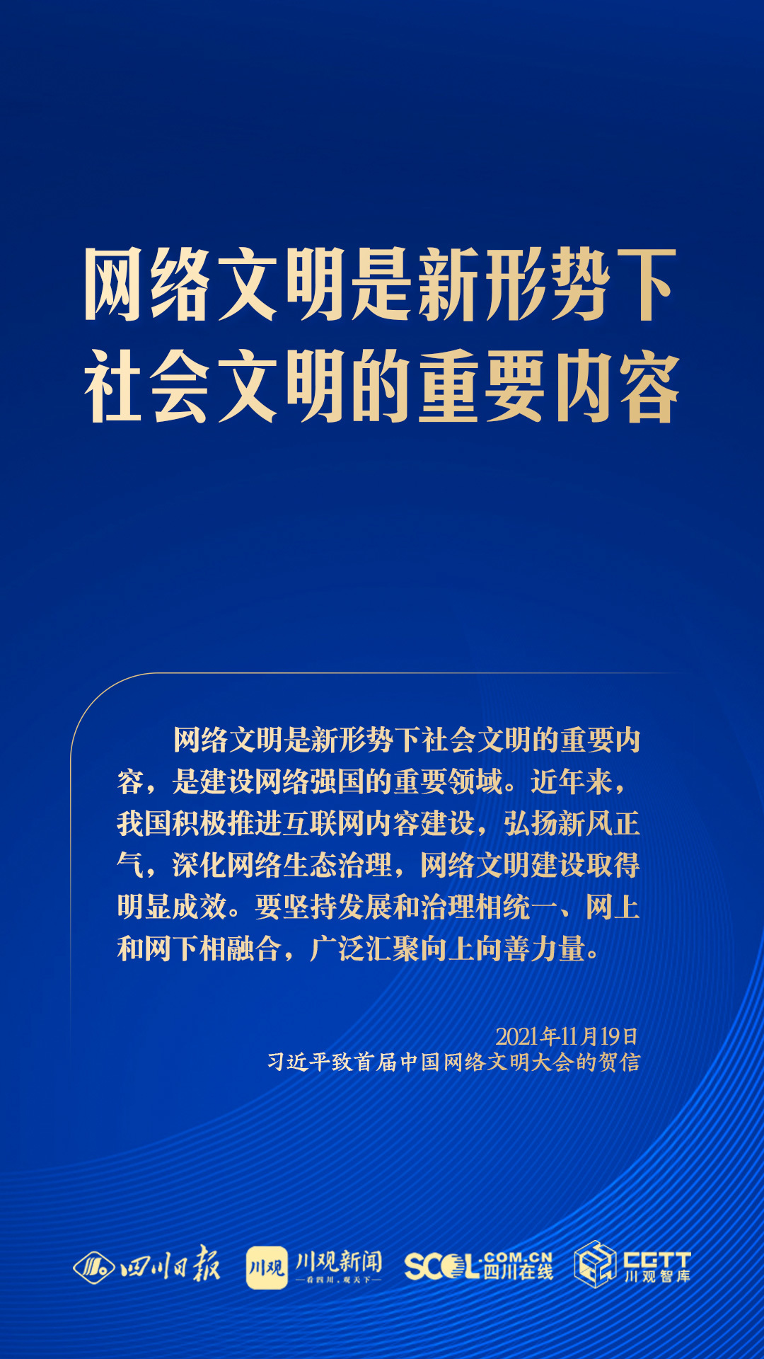 網(wǎng)絡(luò)空間是億萬(wàn)民眾共同的精神家園。黨的十八大以來(lái),習(xí)近平總書(shū)記高度重視網(wǎng)絡(luò)文明建設(shè),把網(wǎng)絡(luò)文明作為社會(huì)主義精神文明建設(shè)和網(wǎng)絡(luò)強(qiáng)國(guó)建設(shè)的重要內(nèi)容,引領(lǐng)和推動(dòng)網(wǎng)絡(luò)文明建設(shè)取得顯著成效。2024年中國(guó)網(wǎng)絡(luò)文明大會(huì)舉辦之際,川觀新聞梳理習(xí)近平總書(shū)記關(guān)于網(wǎng)絡(luò)文明建設(shè)的相關(guān)論述,一起來(lái)學(xué)習(xí)↓↓↓