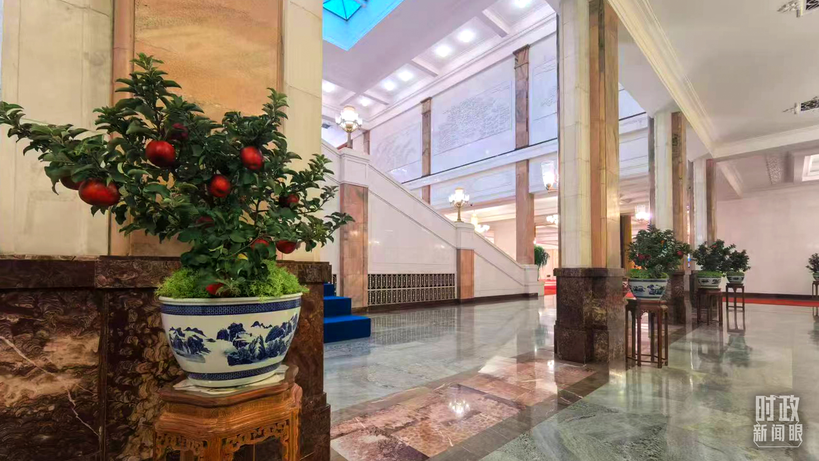 △大會(huì)堂內(nèi)的“碩果累累”盆栽。(總臺(tái)國(guó)廣記者吳倩拍攝)