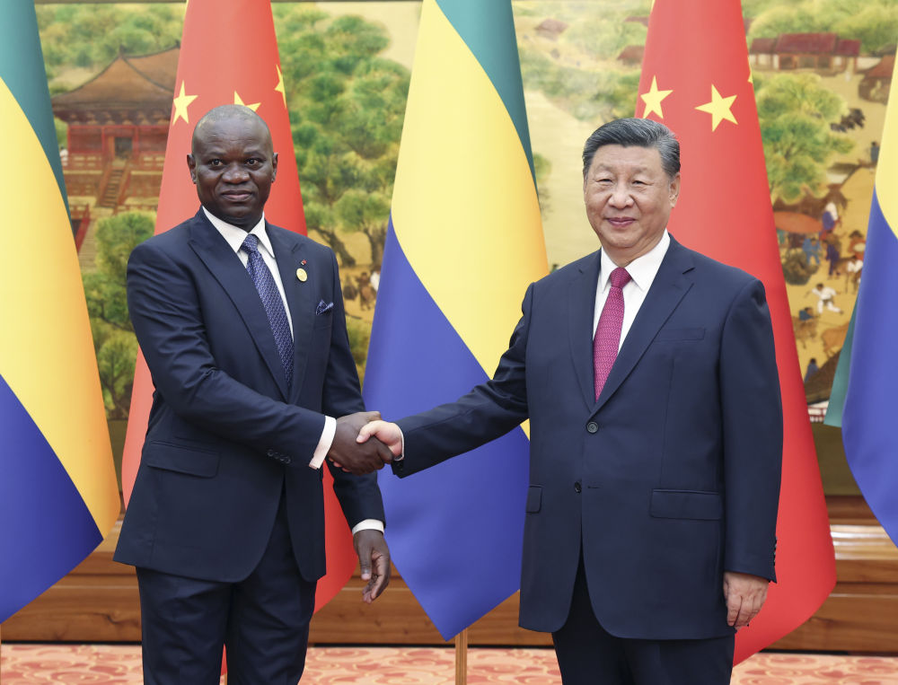 9月4日下午,國家主席習(xí)近平在北京人民大會堂會見來華出席中非合作論壇北京峰會的加蓬總統(tǒng)恩圭馬。