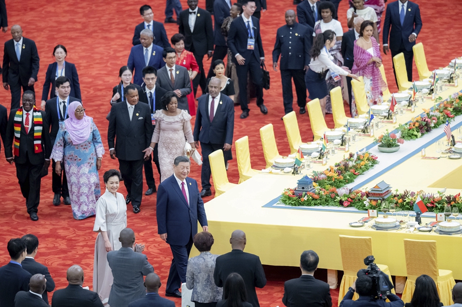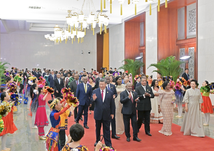 9月的北京,秋高氣爽。雄偉的人民大會堂內(nèi),中國國旗和中非合作論壇成員國國旗以及非洲聯(lián)盟旗幟交相輝映。
