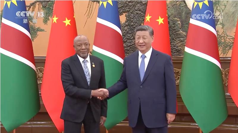 9月5日下午,國家主席習(xí)近平在北京人民大會堂會見來華出席中非合作論壇北京峰會的納米比亞總統(tǒng)姆本巴。